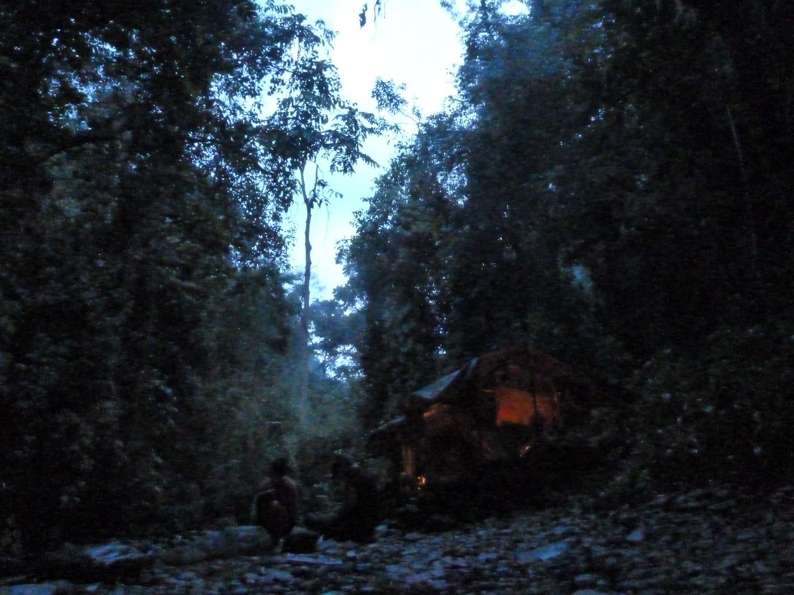 | Das Lager war direkt an einem Fluss, sehr schön gelegen... - aber hart im liegen. |